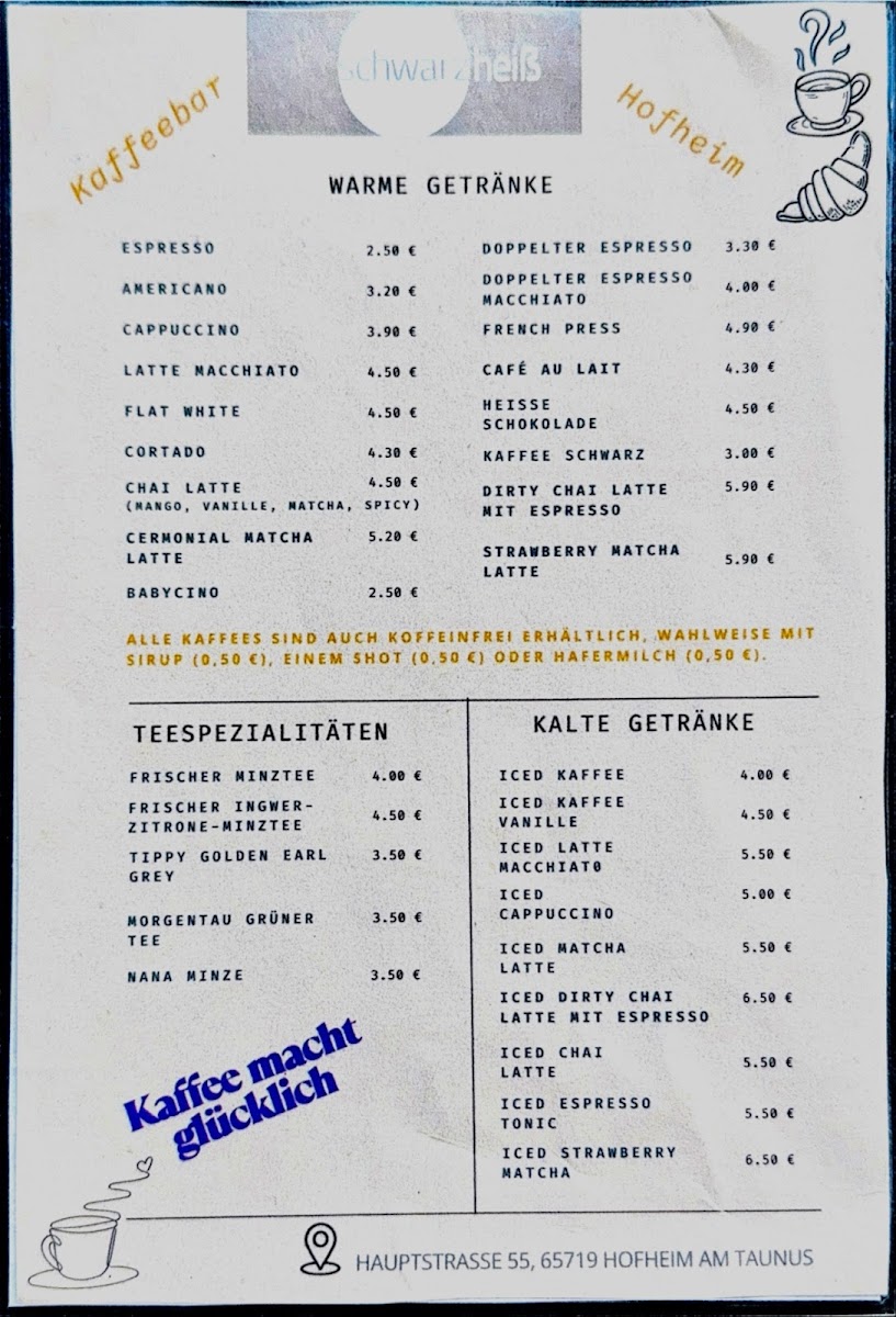 Welcome to Schwarzheiß Café, a hidden gem nestled in the heart of Hofheim am Taunus. This charming café, located at Hauptstraße 55, invites you to indulge in a unique coffee experience. Renowned for its Amazing Espresso Tonic, it stands out as the only specialty coffee spot in the area.